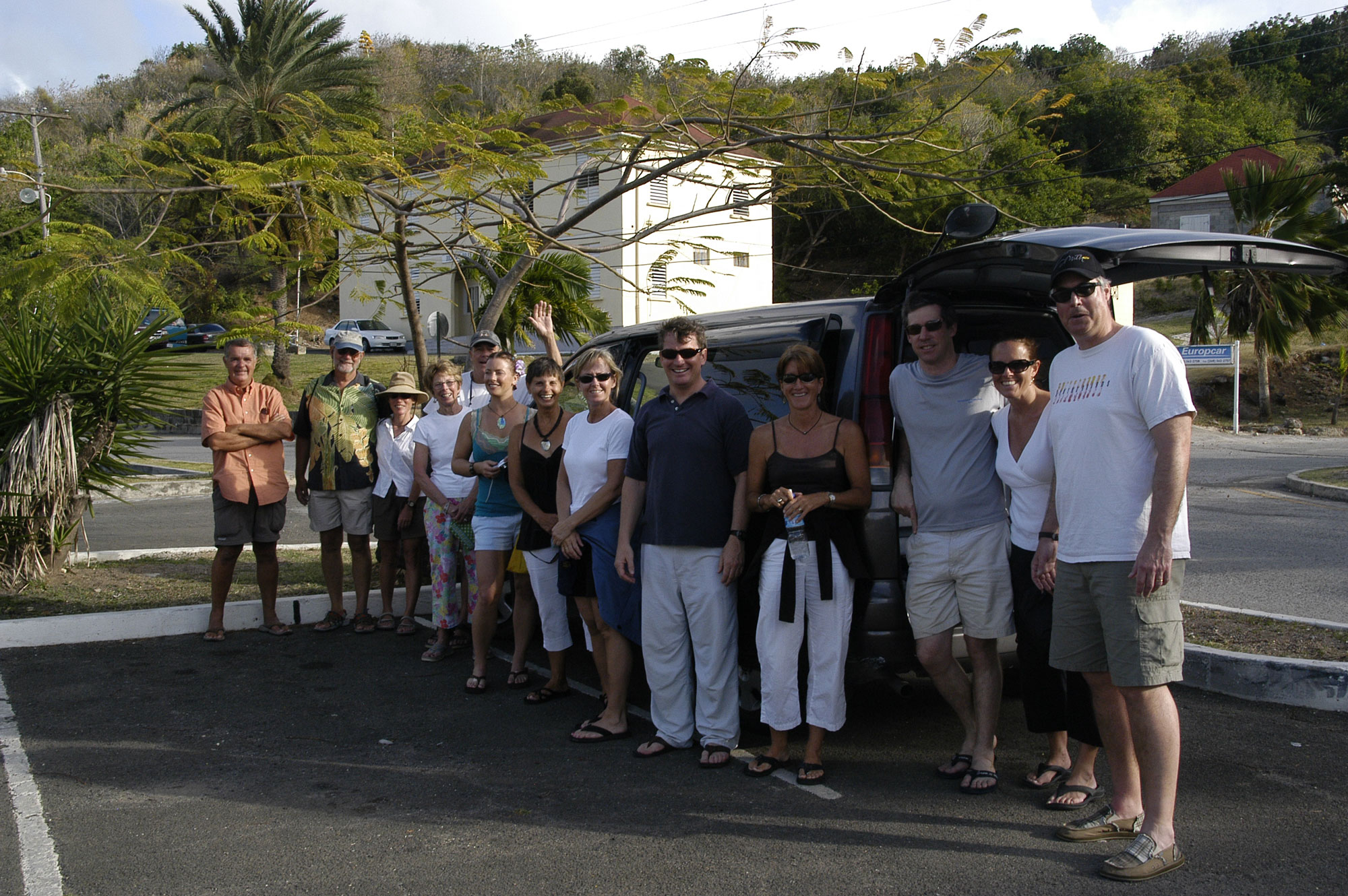 All 14 of us -- yes that was fourteen -- crammed into this minivan to go to the Sunday Reggae party at Shirley Heights |